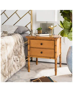 Safavieh Mina Modern Coastal 2-Drawer 25in Bamboo Nightstand Home