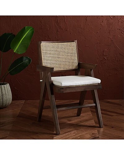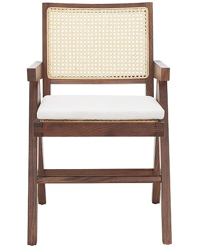 - Create a cozy and inviting spot to relax with the Colette armchair. The sleek and clean-lined armchair receives a relaxed upgrade with rattan mesh upon the back. Expertly crafted with solid ash wood, the armchair is elevated with a walnut finish. It features a generously padded white boxy cushion to deliver supreme comfort. Featuring sleek arms, the light and airy armchair is the perfect spot to relax and unwind.