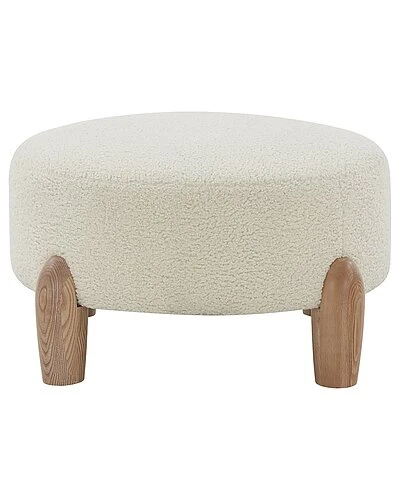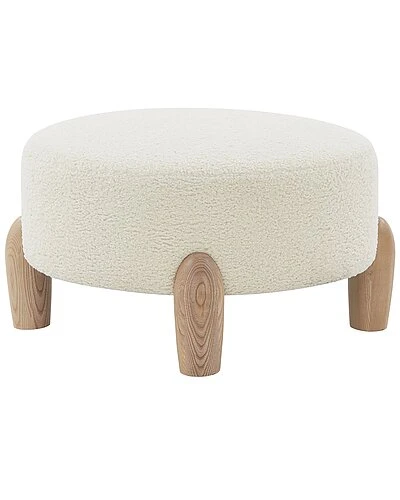 - Add comfort and convenience to your home with the Perez ottoman. Inspired by the simplicity and practicality of the Scandinavian design, the ottoman features a perfectly round and refined cylindrical body. It gracefully sits within subtly curved ash wood legs. Upholstered in faux shearling with a classy ivory shade, the ottoman perfectly complements its natural finished legs to bring welcoming warmth to your living space and family rooms. From a comfy footstool, the ottoman can offer an extra seat for entertaining guests.