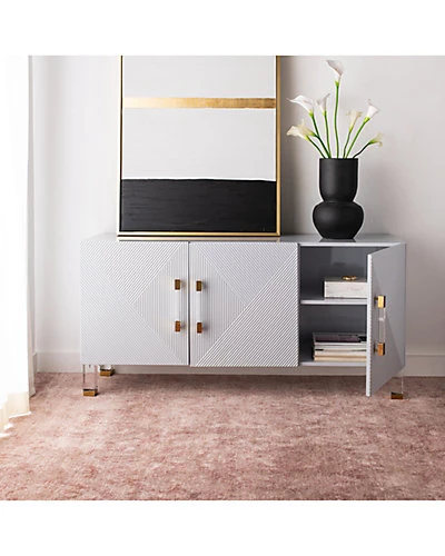 - Embrace the luxury of this contemporary 3-door sideboard. A true blend of art and design, itss fine wood craftsmanship showcases its captivating raised geometric pattern. Its glamourous grey, gold and brass finishes make it the star of any dining room.