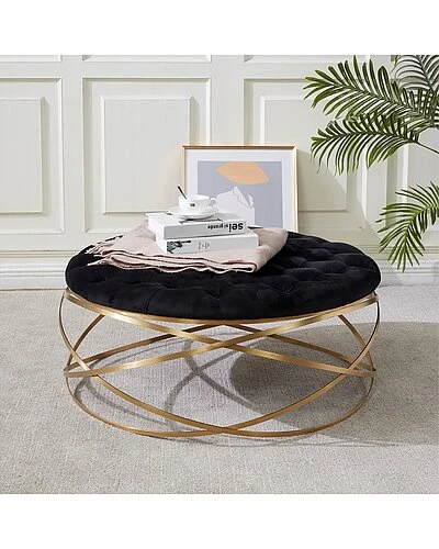 - The focal point in any sophisticated interior, this Rumi Ottoman is a masterpiece of metalwork. Rumis illusionary open frame shines brilliantly in a glimmering gold finish, and plush tufted black velvet completes the glamorous look.