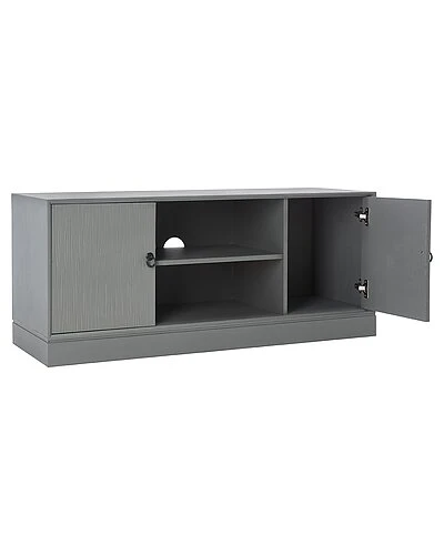 - Bring a touch of rustic refinement to your entertainment space with this Aliyah Media Stand. Aliyahs two doors and open shelf provide ample space for devices, consoles, and movies, while its classic frame is updated for todays farmhouse decor in a distressed grey finish.