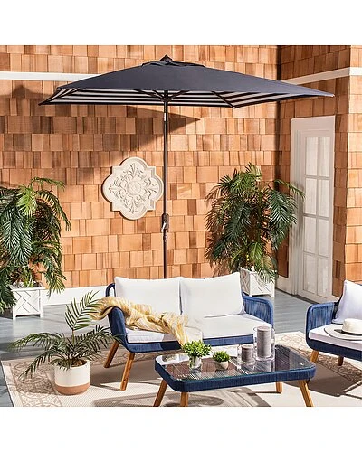 - This captivating square crank umbrella was inspired by the sunbathing terrace of Monacos finest hotel overlooking the Mediterranean. Embracing classic French style, its navy top features a white and navy stripe pattern underneath. For the chic outdoor oasis.