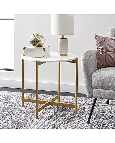 - Your dZcor is about to get a glamorous gala feel with this captivating Calina Accent Table. The epitome of modern decadence, Calinas gold crossed base and clean white circular top create a lavish look in any room, and its low-slung profile makes it ideal for smaller interiors.