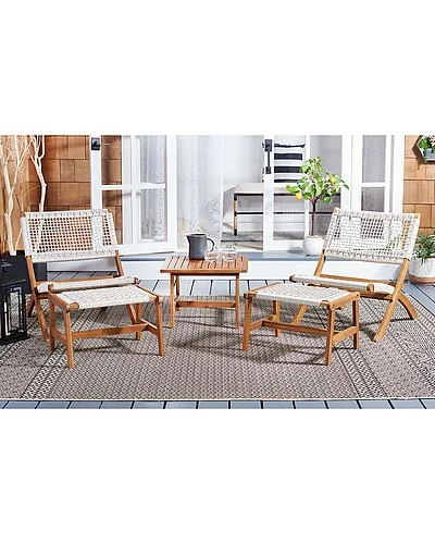 - This Casella Set allows you to stretch out and enjoy the summer breeze with ease and style. Two natural wood chairs and matching ottomans allow for lavish lounging in the sunshine, and an end table provides ample space for coffees, cocktails, or snacks.