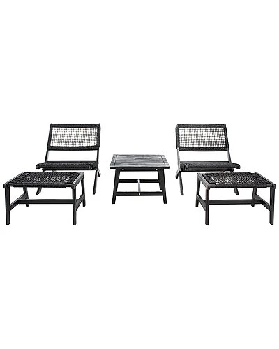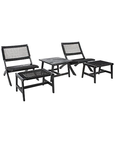 - This Casella Set allows you to stretch out and enjoy the summer breeze with ease and style. Two black acacia wood chairs and matching ottomans allow for lavish lounging in the sunshine, and an end table provides ample space for coffees, cocktails, or snacks.