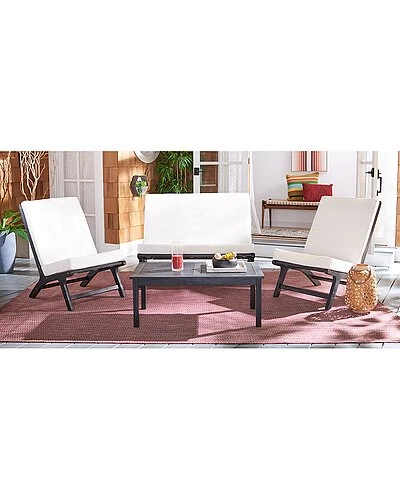 - Alive with surf and sand, Sao Paulos legendary beaches inspired this 4 piece outdoor living set. Crafted of rich natural wood, its clean lines and plush beige upholstery is ideal for afternoon lounging by the pool. Its square pillows with thin navy stripes are complementary.
