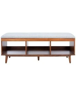 - Give any living space a hint of retro-chic style with this Cricket Bench. Cricket flaunts an airy appeal with three open shelves ideal for storage and display in a rich natural acacia finish, and a grey linen cushion makes for comfortable lounging. Perfectly multi-purpose and versatile.