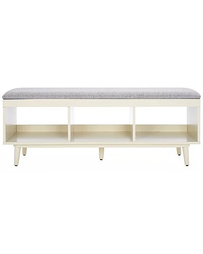 - Give any living space a hint of retro chic style with this Cricket Bench. Cricket flaunts an airy appeal with three open shelves ideal for storage and display in a cream finish, and a grey linen cushion makes for comfortable lounging. Perfectly multipurpose and versatile.