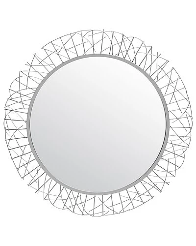- Design details: designed to be a work of art, this contemporary mirror is an instant focal point in the living room or entryway. crafted with the durability of iron, its silver finish illuminates an intricate geometric cut-out pattern that frames its circular mirror.
