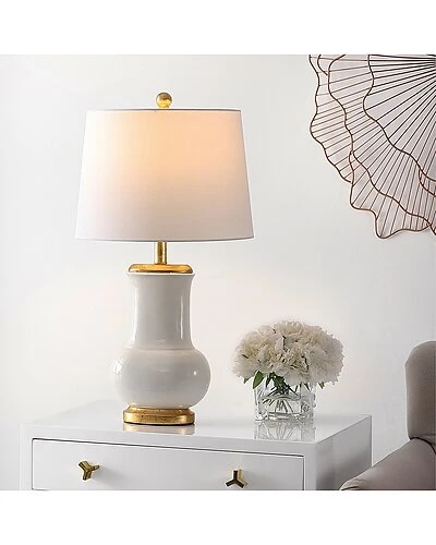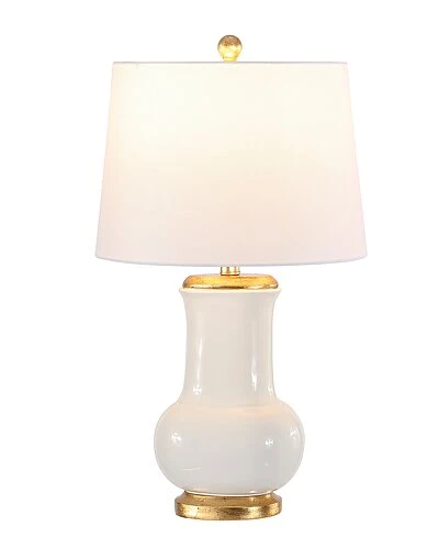 - Design details: Give your decor a regal touch with this effortlessly elegant Emberson Table Lamp. Embersons smooth ivory ceramic is classic and sophisticated, while a liquid gold resin base and top make it an indulgence. A tapered drum shade completes the look.