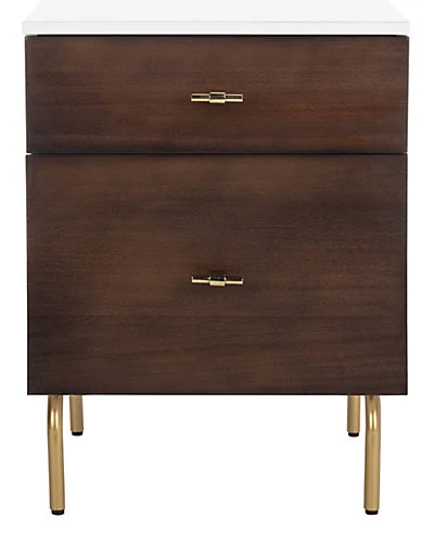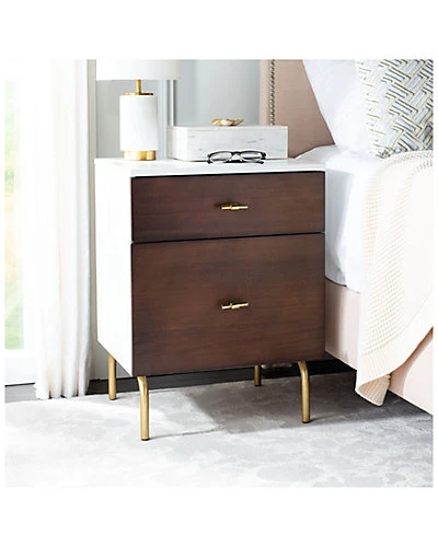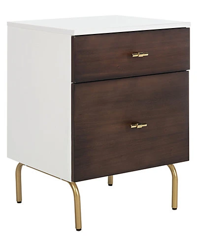 - Elegant and modern, the natural beauty of this 2-drawer nightstand will add style and warmth to any bedroom. Finely crafted with wood, its rich white finish and gold metal legs give it vintage-style charm. Its two ample drawers make it an investment.