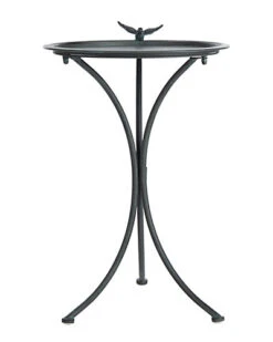 - Infuse any garden with peace and tranquility with this Kensi Bird Bath. Perfect for creating a soothing outdoor retreat, Kensis sleek iron curves are finished in antique grey and accented by a serene bird ornament that adds an artistic, sculptural touch.