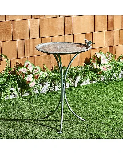 - Infuse any garden with peace and tranquility with this Kensi Bird Bath. Perfect for creating a soothing outdoor retreat, Kensis sleek iron curves are finished in antique blue and accented by a serene bird ornament that adds an artistic, sculptural touch.