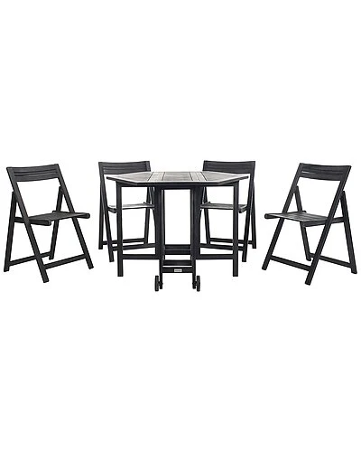 - Design details: Stack the odds for carefree outdoor living in your favor with the ingenious Kerman dining table and chair set. Crafted of eco-friendly black acacia wood, 4 director-style chairs fold and tuck under a foldable hexagonal table for easy storage.