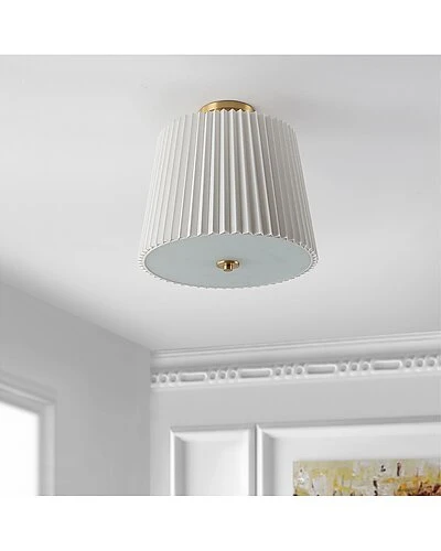 - Design details: Nothing beats the classics, and this Madio Flush Mount proves that timeless designs are just as stylish as avant-garde ones. Madios pleated off-white fabric shade casts a warm glow in any room, while gold iron fittings add an elegant touch.