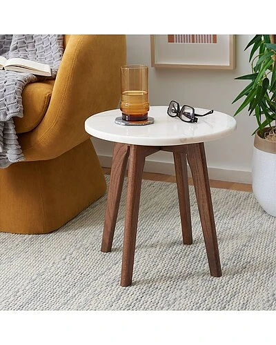 - Design details: mid-century charm gets a modern celebrity chic upgrade in this matchless marini end table. clean-lined retro legs in a rich walnut finish provide a beautiful artistic counterpoint to the organic striations of its white marble top, making marini a masterclass in mixed media craftsmanship.