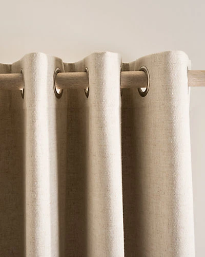 - Design details: Styled for todays fashion-smart room decor, the Nealonia Window Panel veils understated geometric design in a chic blend of heathered color tones and radiant texture. Fade-resistant synthetic fabric in light beige hues play perfectly in the subtle twill pattern of this decor-friendly window treatment. Finished with polished metal grommets for easy installation and a silky-smooth blackout lining for maximum sun protection and privacy.