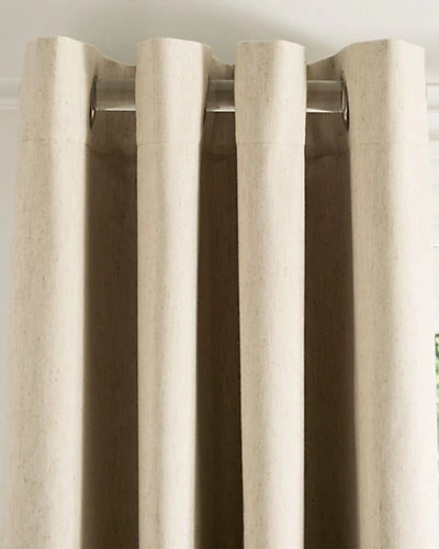 - Design details: The natural look of contemporary-casual design is beautifully showcased in the Patras Window Panel. A blend of synthetic and linen fabric, colored in beige and flecked with subtle grey hues, conveys soothing character ideal for the living room, bedroom, or dining areas. The look is further enhanced with a silky-soft blackout lining ideal for shading sunlight and maximum privacy. Polished metal grommets provide easy-slide installation.