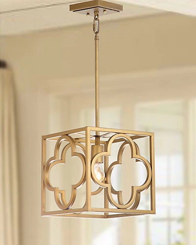 - Design details: Bring glamour and sophistication to your decor with this contemporary trellis pendant. Designed with a bold metal frame, it features a decadent gold finish and quatrefoil cut out that makes a grand statement in any foyer, living room or dining room.