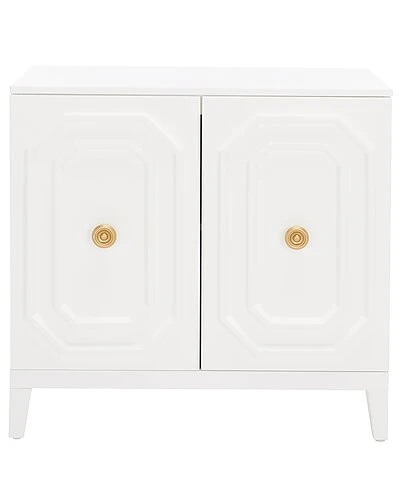 - Eye-catching and fashion forward, this Riya Cabinet gives an eclectic modern feel to your decor. The carved concentric square details on Riyas two doors emanate rich artistic depth, and its clean white finish seamlessly accents existing furnishings.