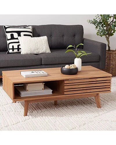- Retro chic style meets artistic negative space in this Rori Coffee Table. Abounding with depth and dimension, Rori provides your living room with ample storage its one discreet shelf, and a rich oak finish ensures Rori perfectly accents any decors color scheme.