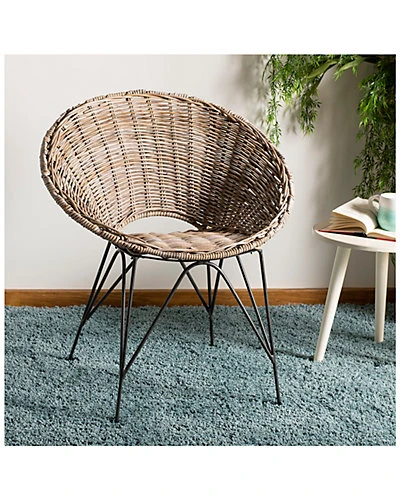 - Design details: Bring designer style to the living room with this contemporary rattan accent chair. A blend of chic modern geometric shapes and natural materials, its luxurious grey wash finish and rich dark steel legs blend into any decor. An instant everyday escape.
