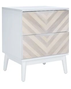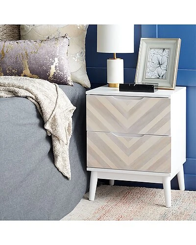 - Refresh your bedroom decor with the striking style of this Tay Nightstand. The staggered brown chevron pattern streaming over Tays two drawers brings dramatic visual intrigue to its clean-lined whitewash frame, while its Mid-Century legs make it a new classic.