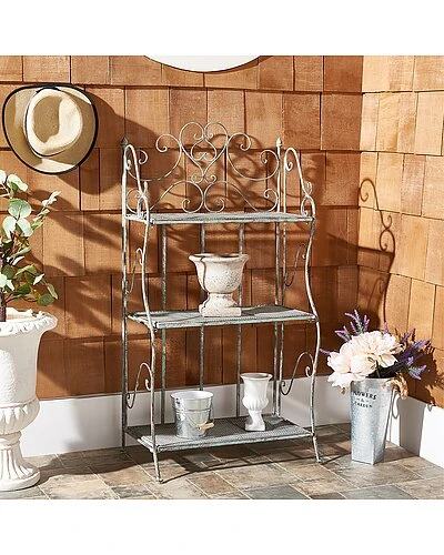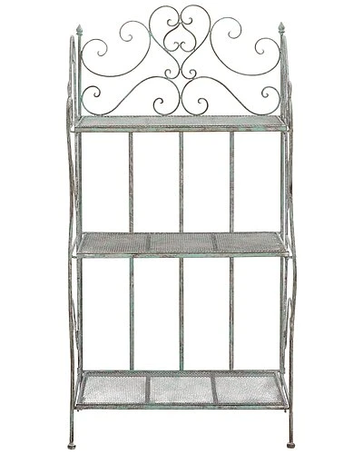 - Bring charm and character to any outdoor room or garden with this beautiful Torus Shelf. Designed with elegant iron scrollwork in an antique blue finish, Torus’s three generous tiers provide ample space for stylish storage.