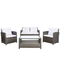 - Lifes a beach, and with this Vellor Living Set youll be sure to bring the relaxed coastal lifestyle to the porch or patio. Vellor comes with two armchairs and one loveseat in black and topped with plush beige cushions, enticing you to find the perfect arrangement around its glass topped coffee table.