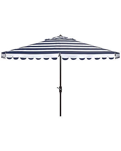 - The stylish navy and white stripes and scalloped detail of this chic Vienna Umbrella fashionably elevates the art of sunbathing. Viennas round polyester canopy protects you from harsh summer rays, and its brown aluminum post intelligently complements its coastal color palette.