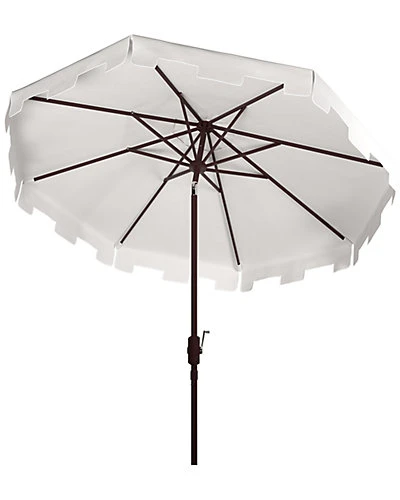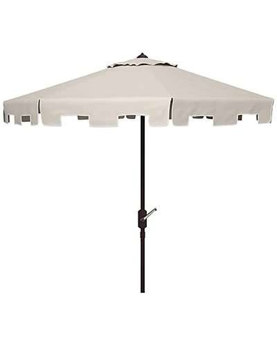 - A classic market umbrella gets a chic makeover in neutral beige and white with a stylish valance for extra sun protection and European flair. Its round eleven-foot polyester canopy and brown aluminum post make it ideal for the veranda or pool deck. Includes easy crank and tilt mechanism.